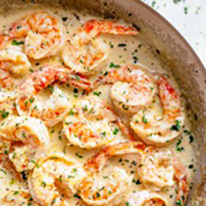 - 5. Add the shrimp back into the pan, sprinkle with parsley. Taste test sauce and adjust salt and pepper, if needed.