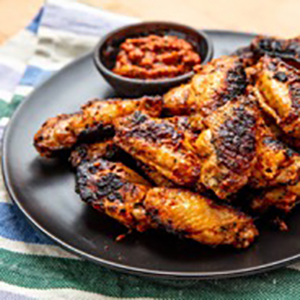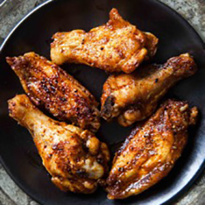 - 2. Heat grill or grill pan to medium heat. Oil grill grates with vegetable oil. Add wings and cook, stirring occasionally, until skin is crisp and meat is cooked through, 15 to 20 minutes.